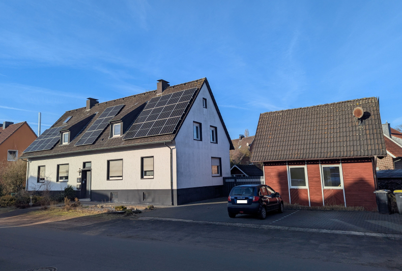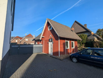 Zum Angebot gehört zudem ein separates, 2011 erbautes Tiny House mit eigenem Gartenanteil. Das kleine „Schwedenhaus“ verfügt über zwei Ebenen sowie eine Genehmigung zur Wohnraumnutzung. Das Häuschen ist wie folgt aufgeteilt: Eingangs-/Schlafbereich, Wohnbereich mit Küchenanschluss, Badezimmer sowie ein Treppenaufgang ins Dachgeschoss. Im Dachgeschoss befinden sich zwei weitere Räume, die flexibel genutzt werden können. Zudem teilt sich das Grundstück so auf, dass der Gartenbereich alleinig zum Tiny House bzw zur ETW gehört. Die EG ETW hat seinen eigenen, enhezäunten Bereich.