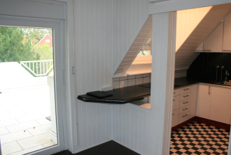 Die Wohnung ist insgesamt hell und freundlich ausgestattet. Innerhalb der Wohnung sind verschiedene Bodenbeläge vorhanden: Laminat im Wohnzimmerbereich, Teppich und Holzdielen in den Dachgeschoss-, PVC in den übrigen Räumen der Wohnung. Die Tageslichtbäder sowie die Dachterrasse sind gefliest. Die Tageslichtbäder verfügen jeweils über eine Dusche und Badewanne. Die Fenster sind allesamt ausgetauscht worden (ab 2019/2022). Im gleichen Zeitraum wurden die Radiatoren angeschafft - Selbige werden durch die bereits vorhandene und auf dem Dach angebrachte Photovoltaikanlage unterstützt. Das Dach wurde in den ´90ern erneuert. Ein Kamin (aus 2018) sorgt für eine angenehme Atmosphäre im Wohnzimmerbreich - zusätzlich befindet sich ein Außenkamin im überdachten Bereich der Dachterrasse. Die Einbauküche mit E-Geräten ist im Kaufpreis enthalten.