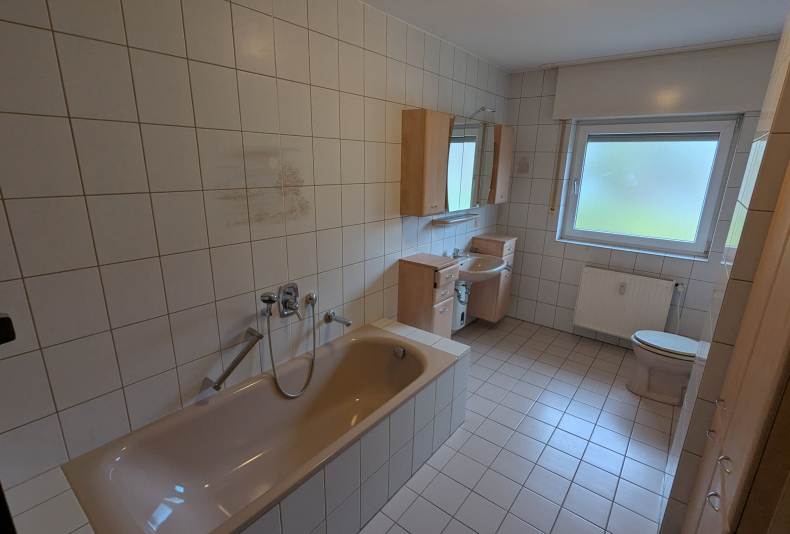 Besonders hervorzuheben sind die zwei Tageslichtbäder: Das kleinere Bad ist mit einer Dusche ausgestattet, während das größere Badezimmer über eine Badewanne verfügt.